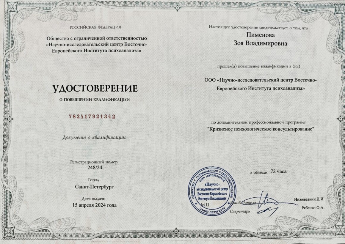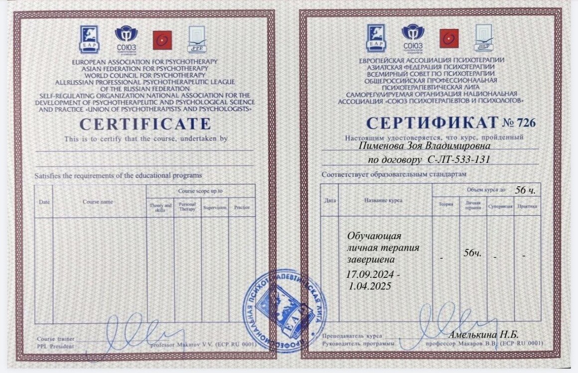 Благодаря глубокому изучению психоанализа, клинической психологии и семейного консультирования, Зоя Владимировна использует интегративный подход в работе с клиентами. Это означает, что каждый случай рассматривается индивидуально, с применением наиболее эффективных методов